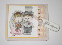 I embellished with flowers from Kort og Godt and used a simple sentiment stamp (from somewhere - I think it is Kreativ Hobby) - "It is your day to day - Congratulations" , just so it would not be too much. I also used a piece of brown ribbon around the lid of the box.